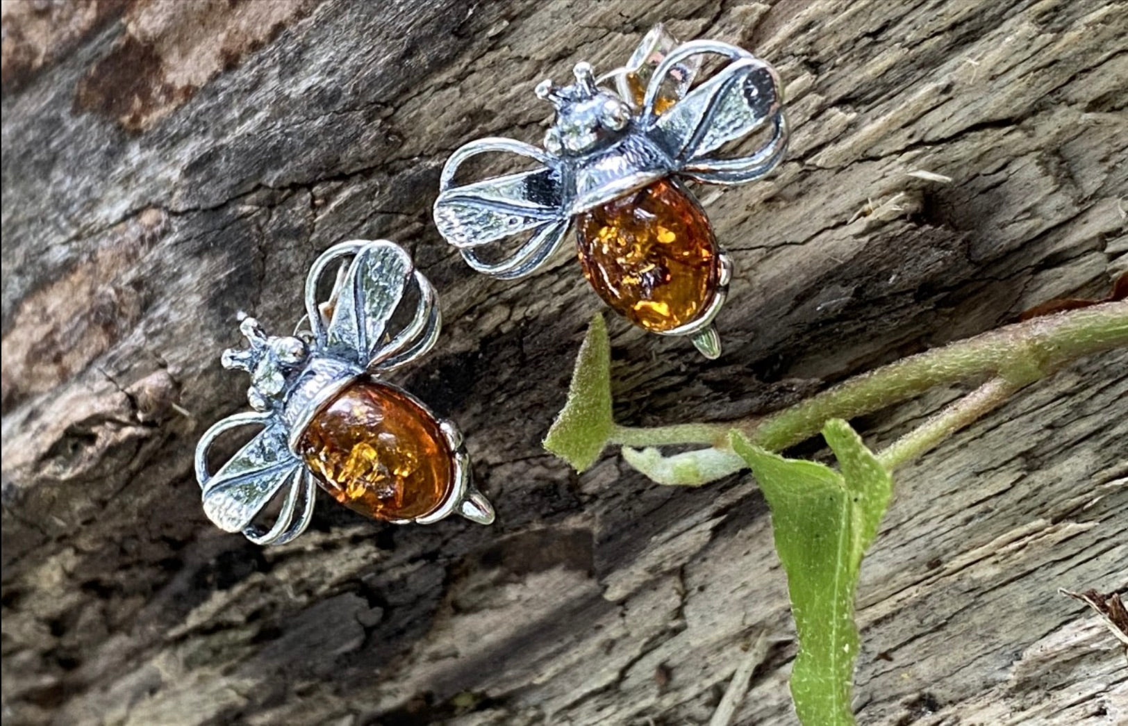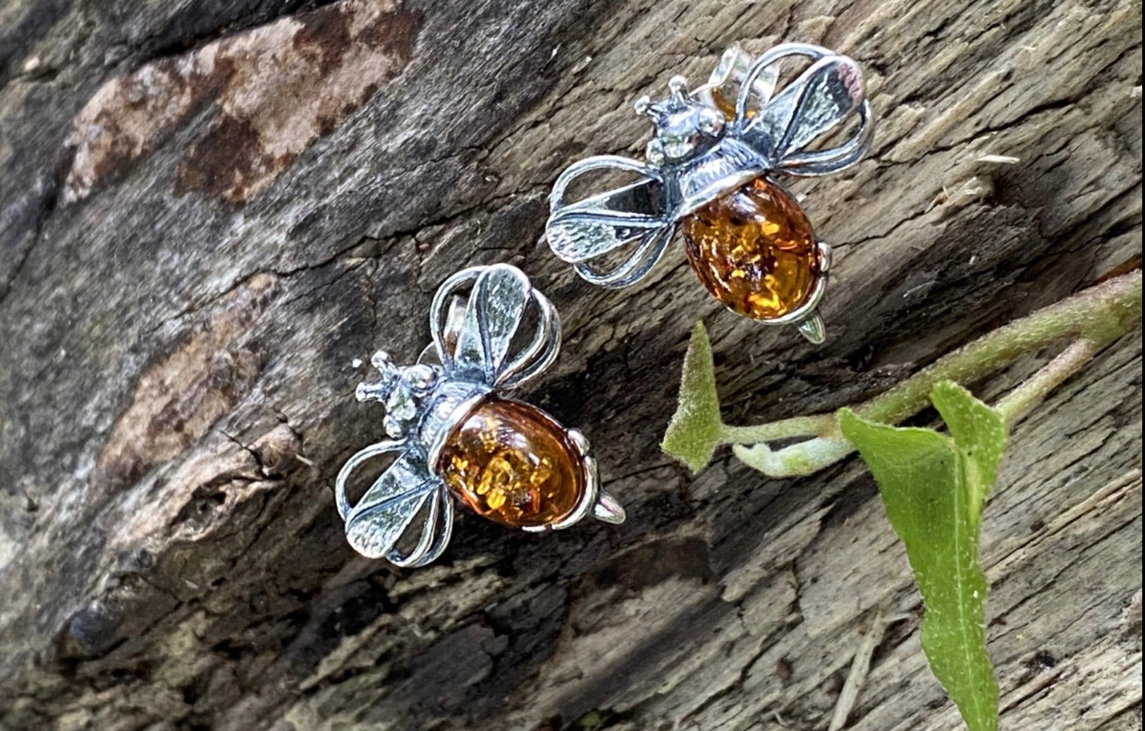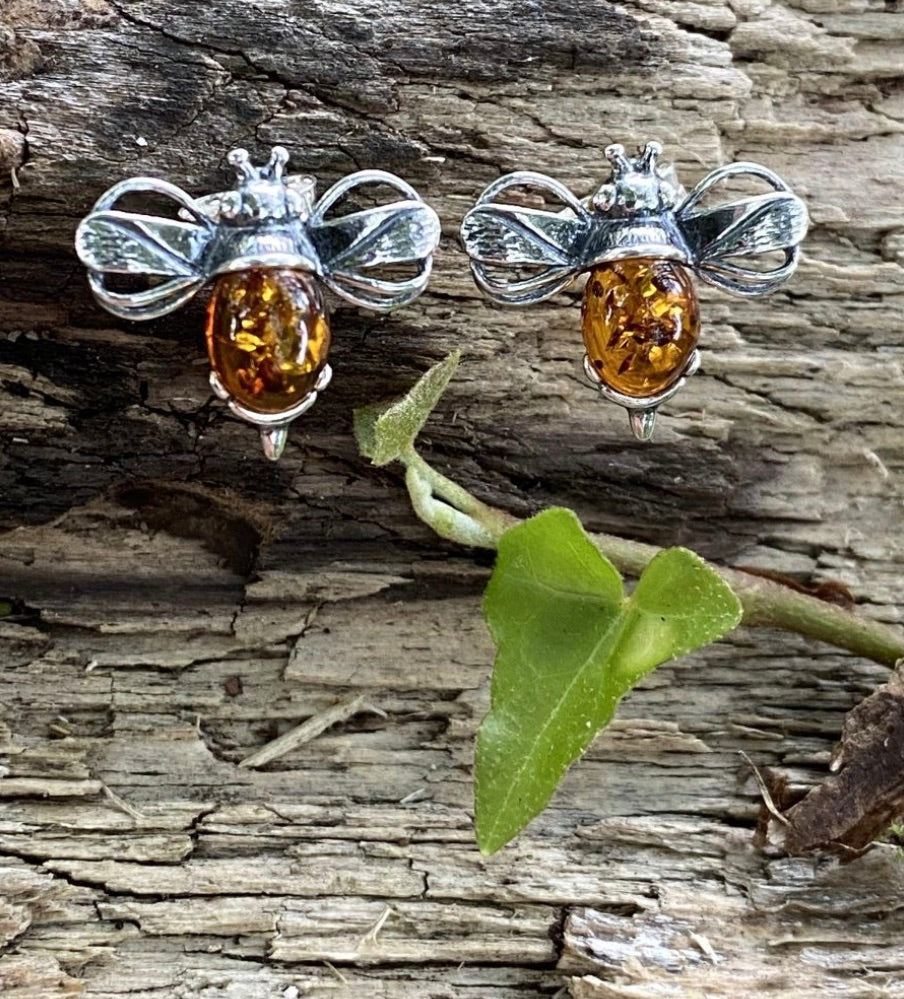 These beautiful earrings are Sterling Silver with beautiful Baltic Amber. The bee represents brightness and personal power.