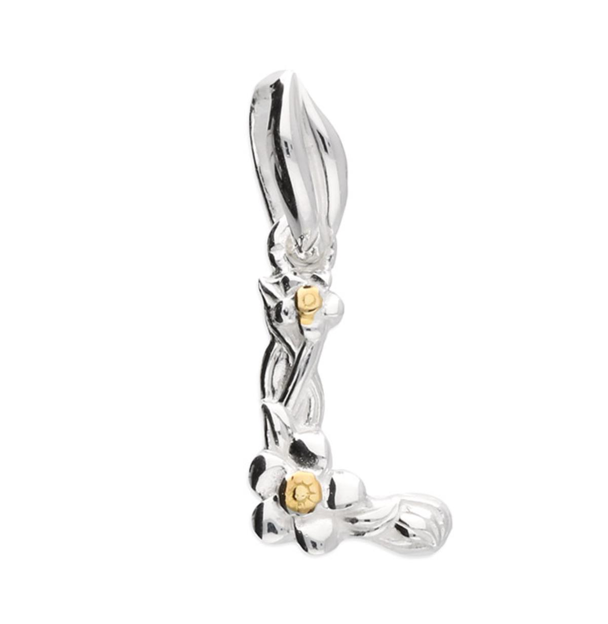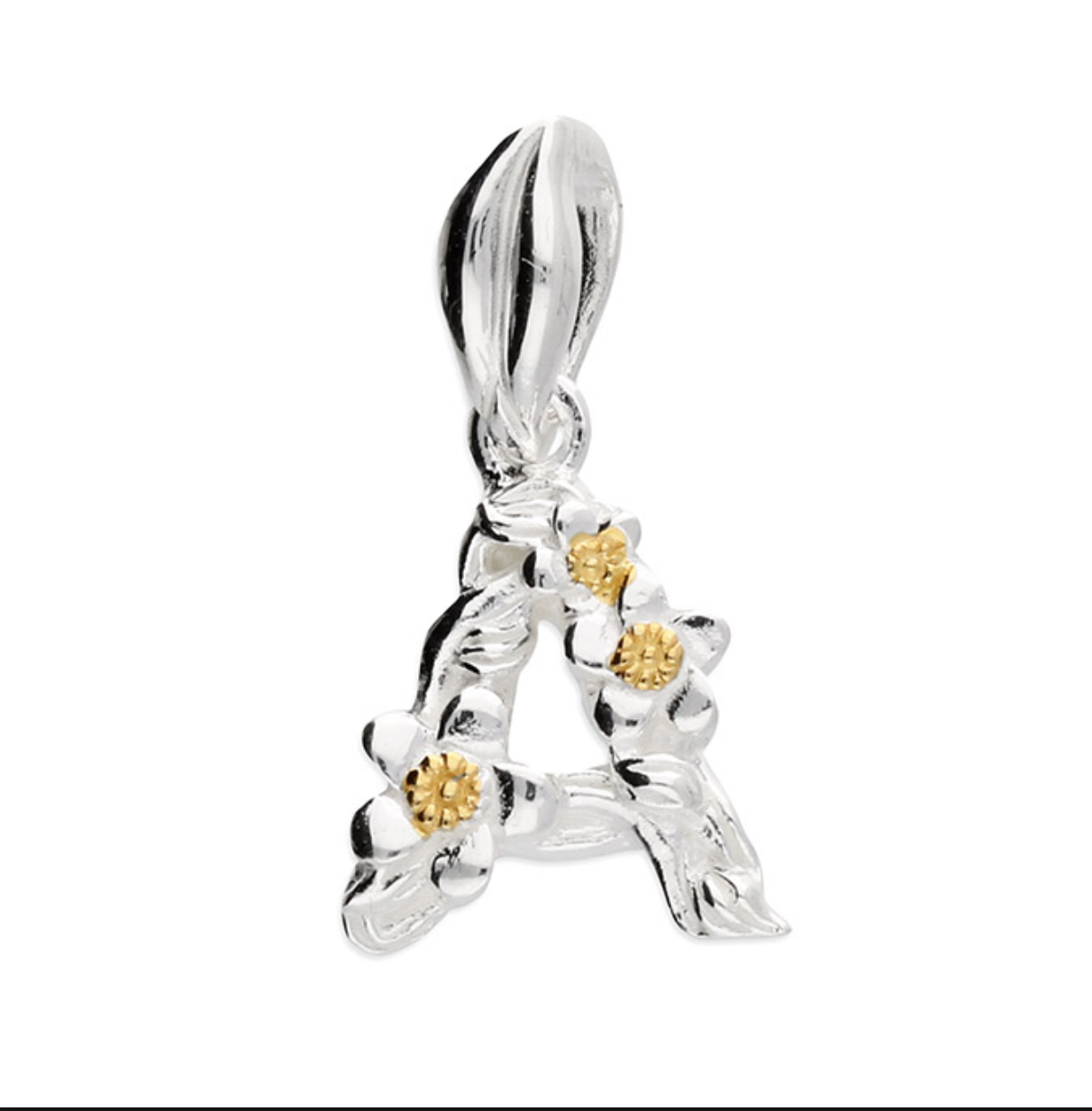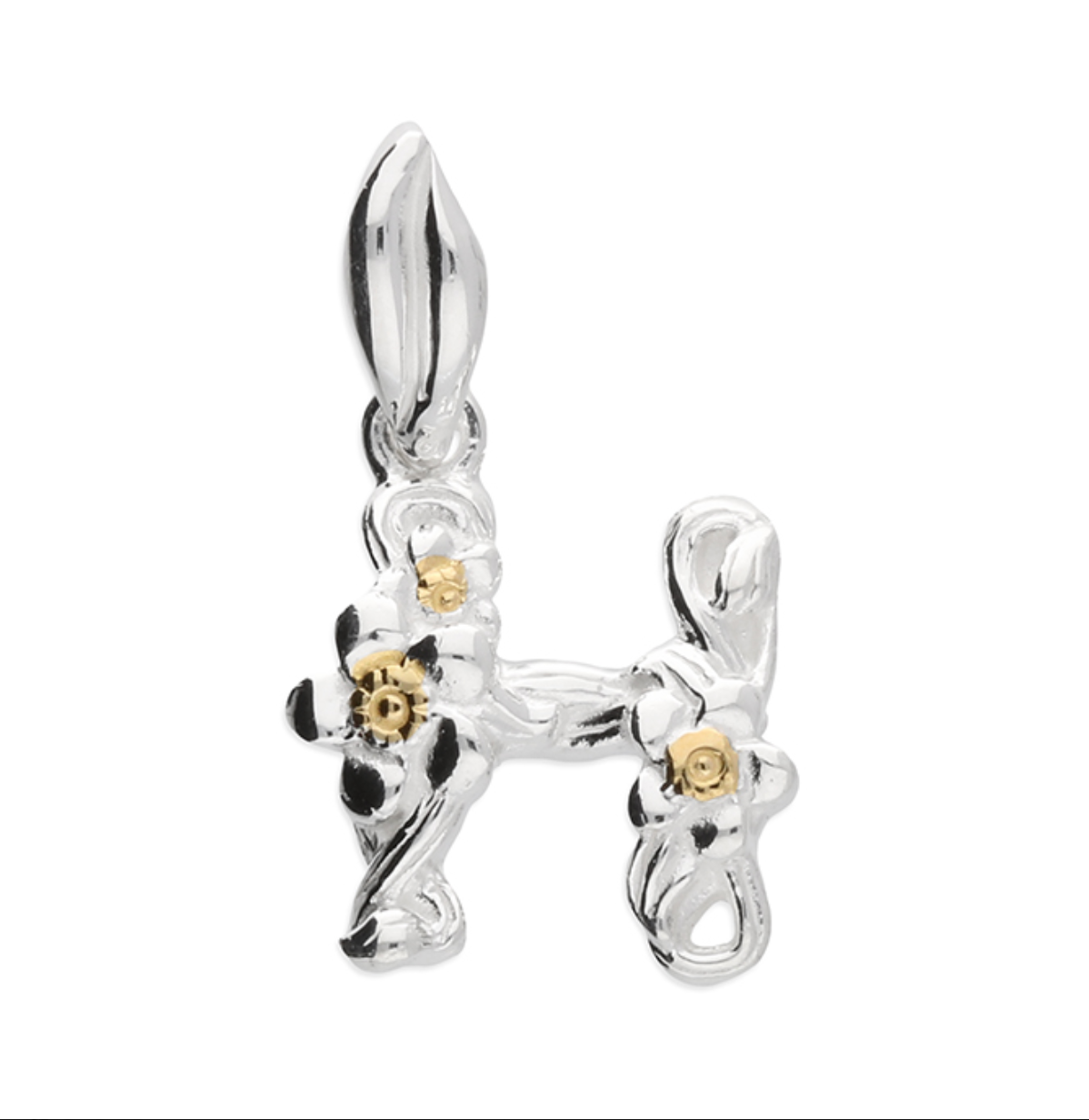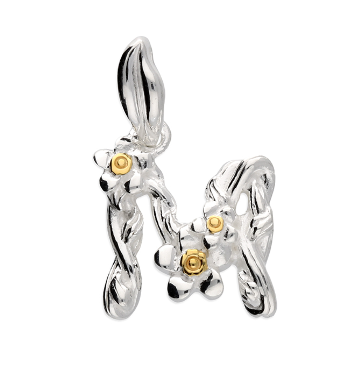 Each letter is crafted from silver with an 18ct yellow gold accent.