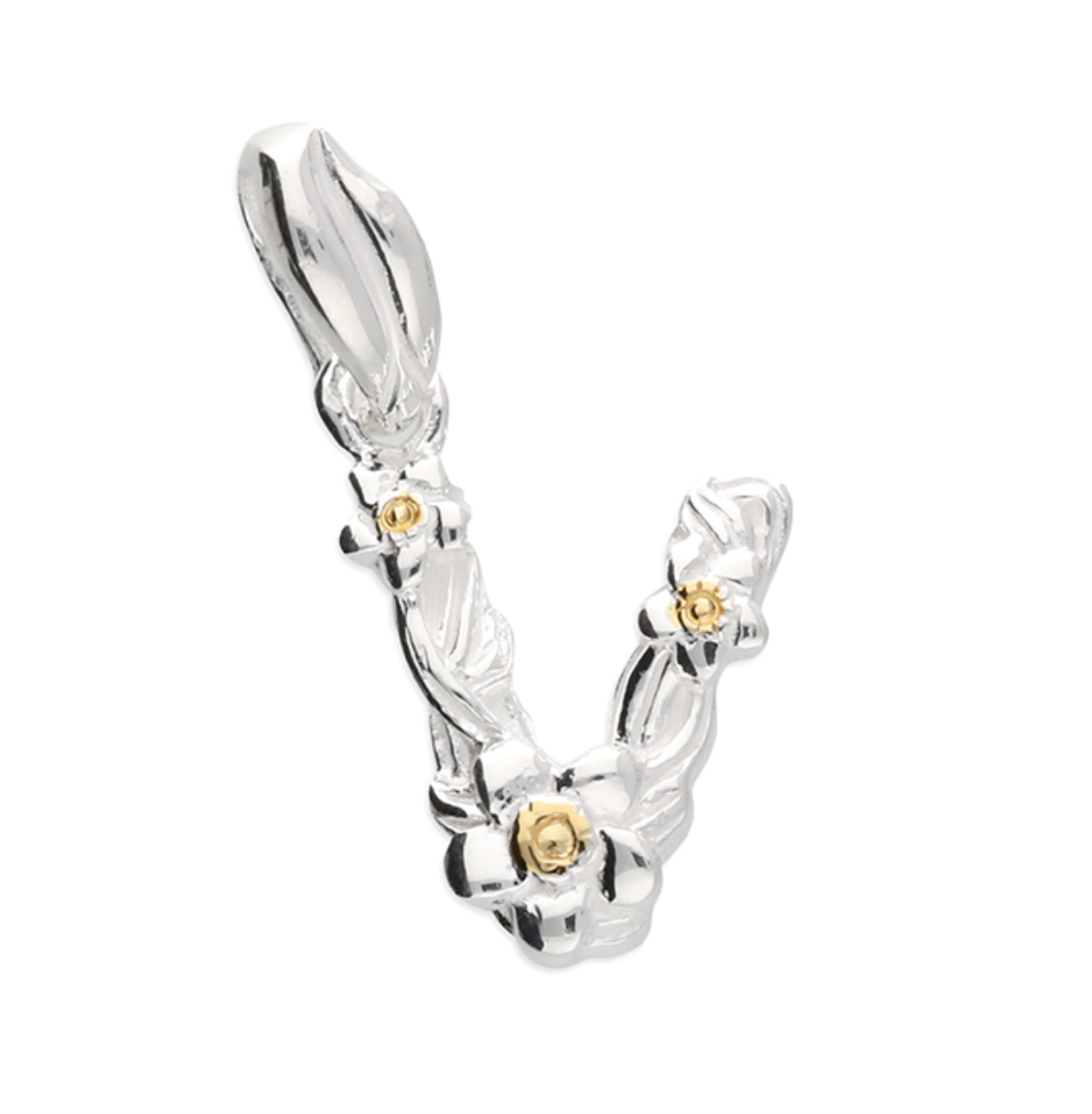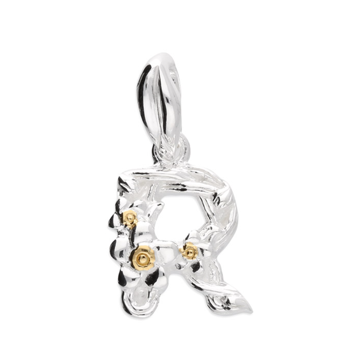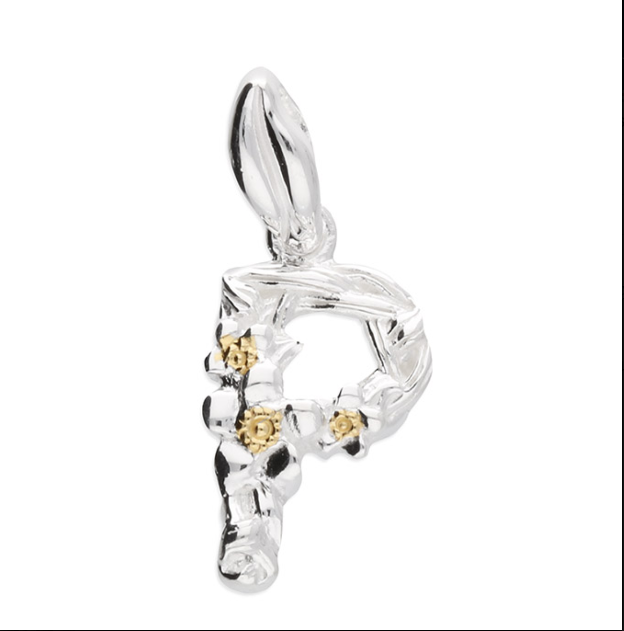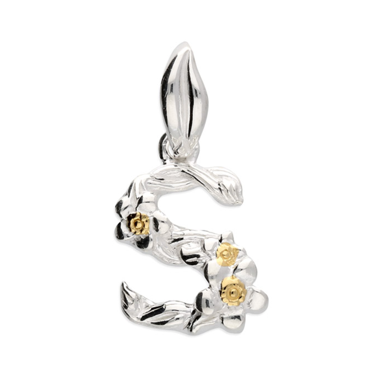 Each letter is crafted from silver with an 18ct yellow gold accent.