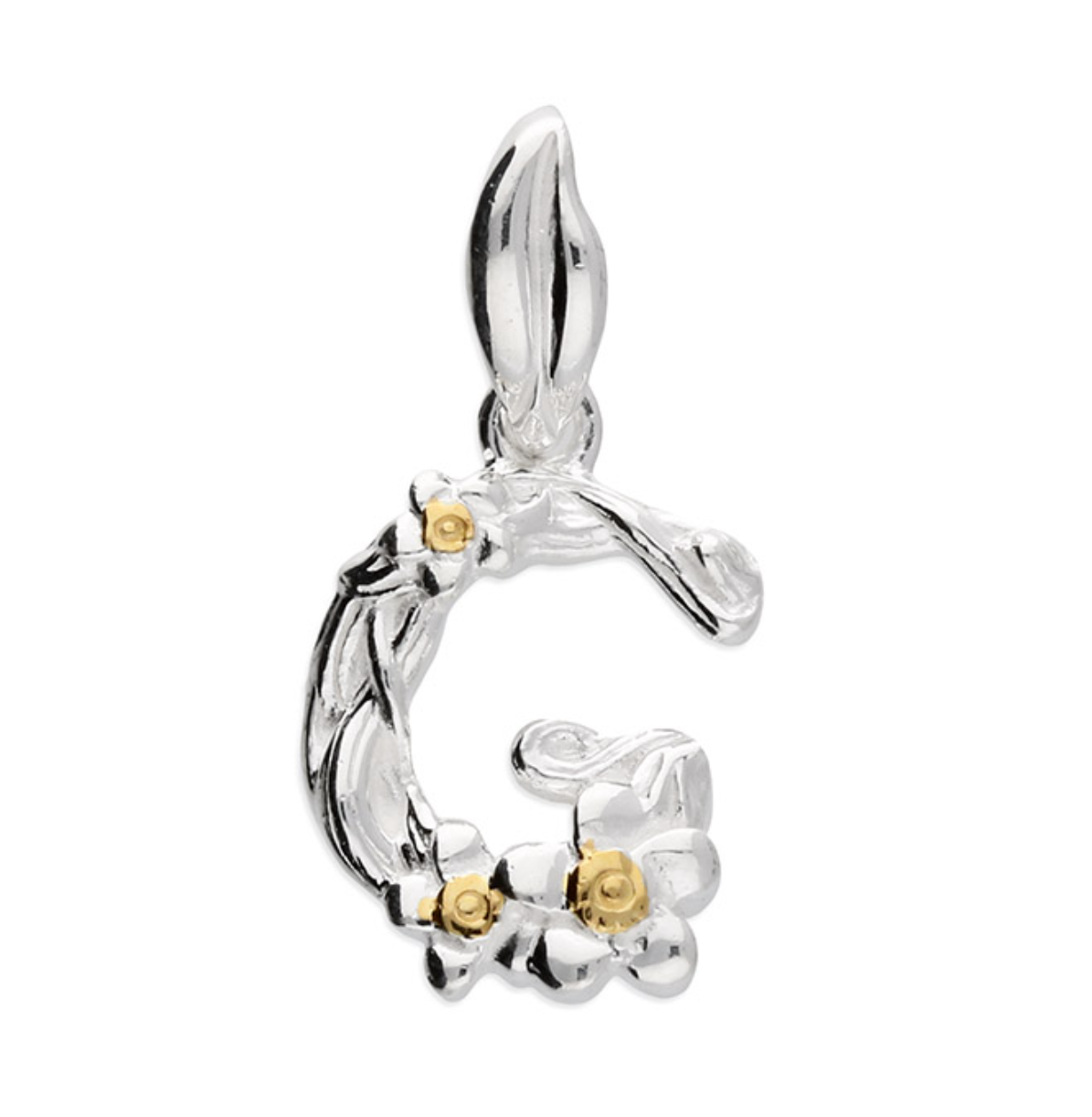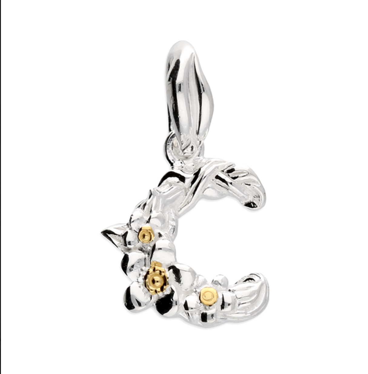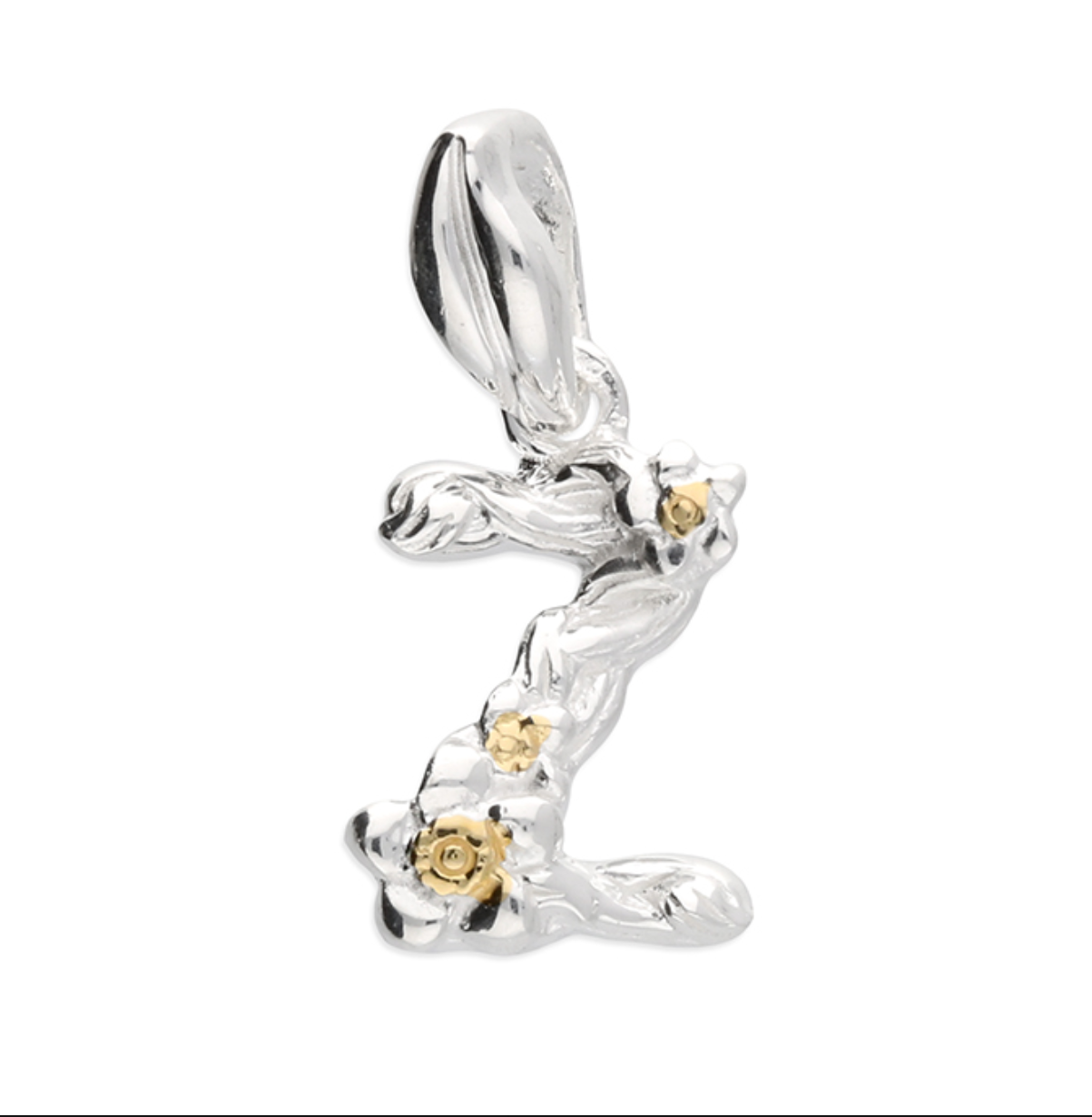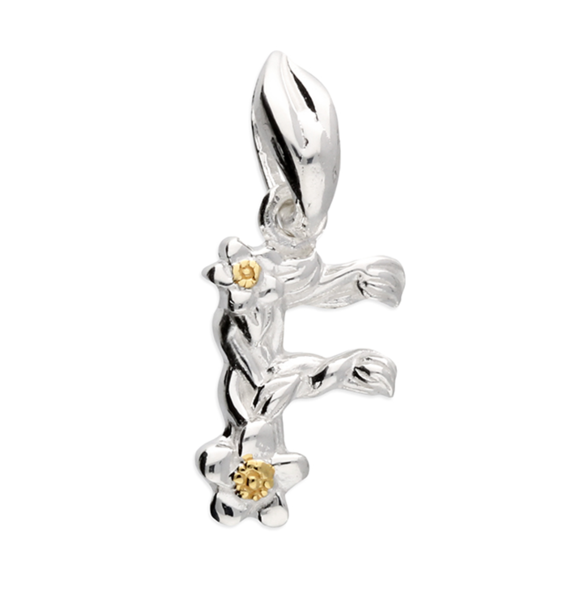 Each letter is crafted from silver with an 18ct yellow gold accent.