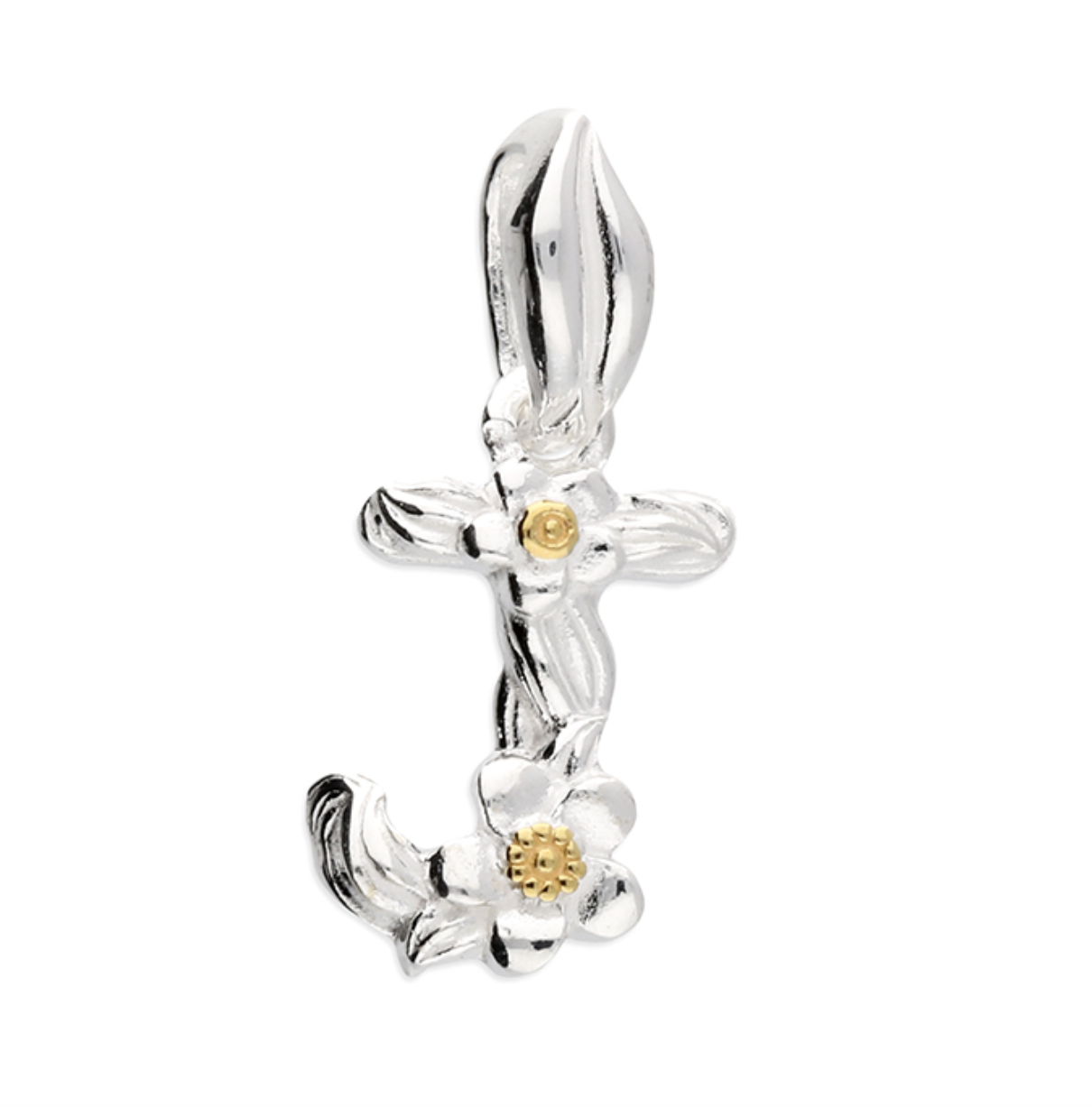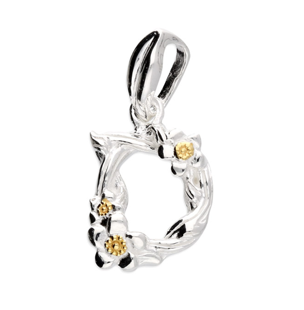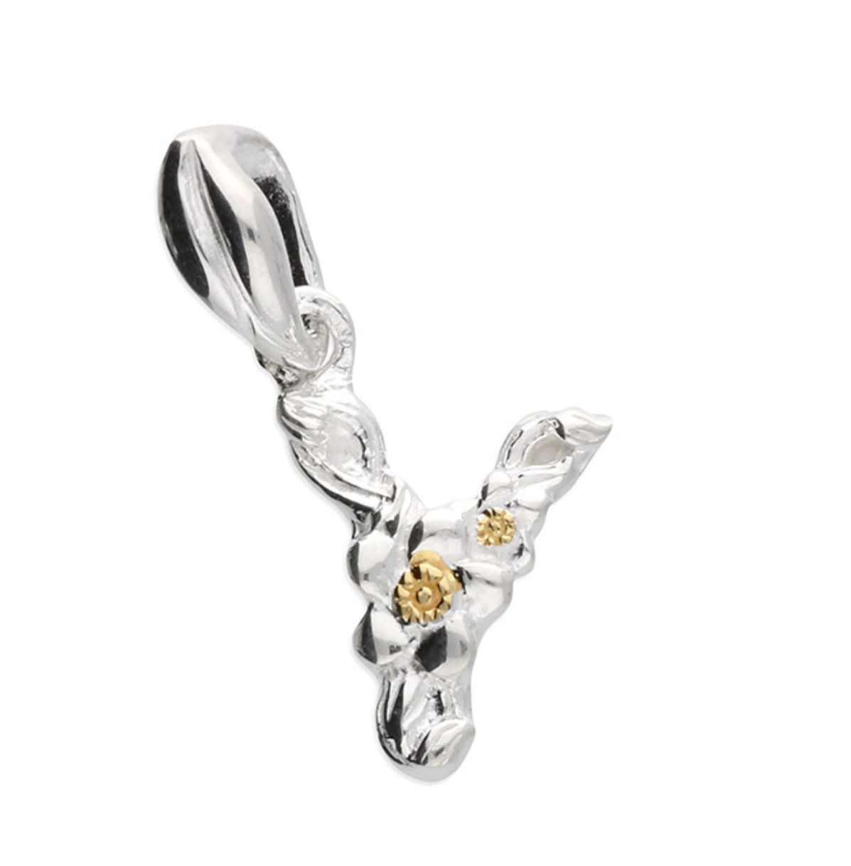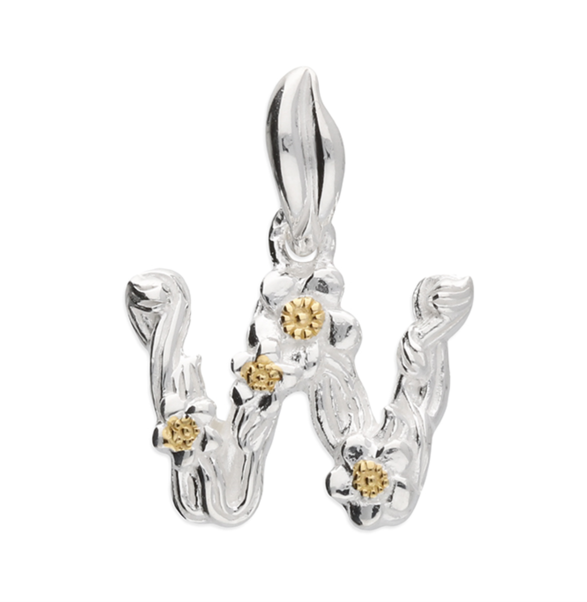 Each letter is crafted from silver with an 18ct yellow gold accent.