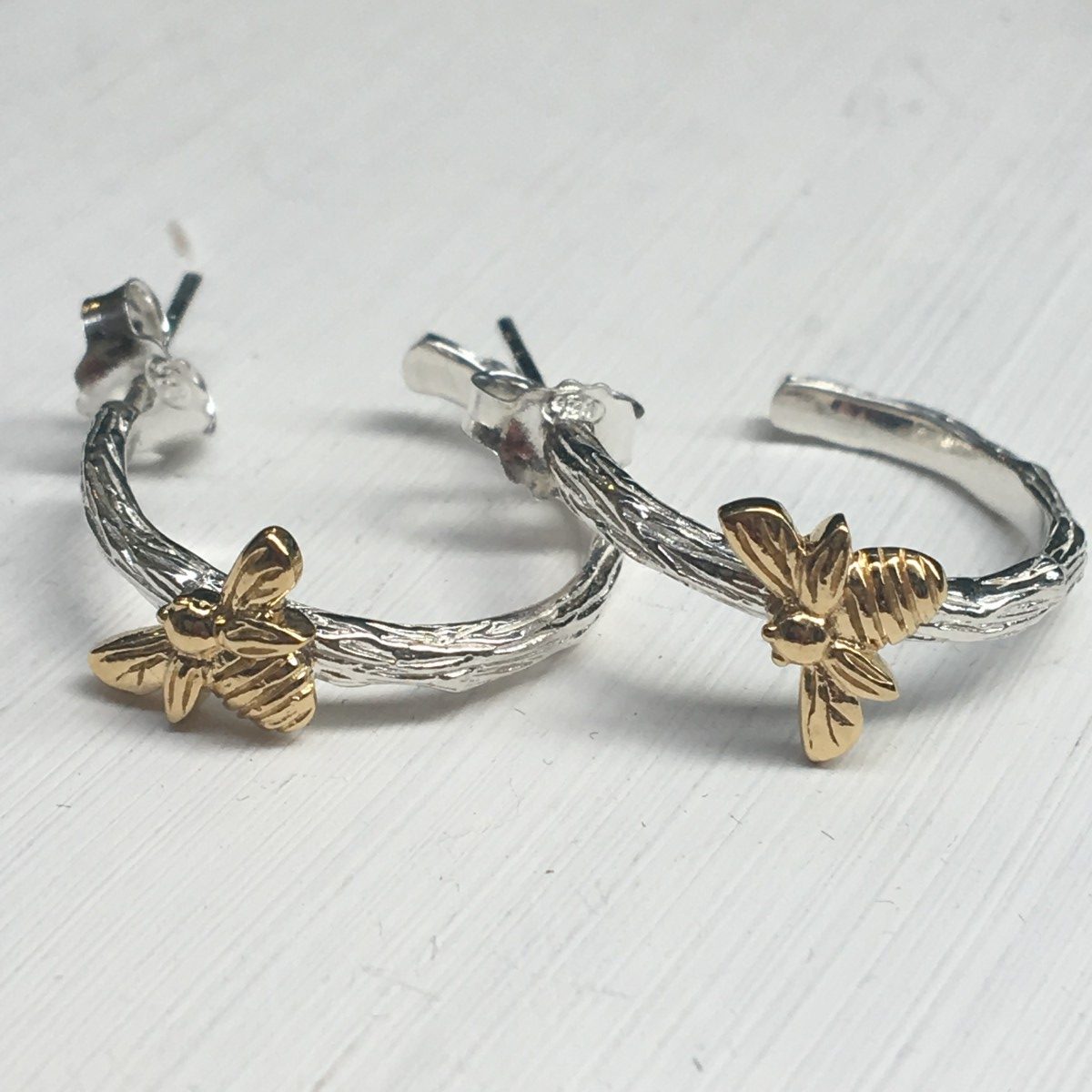 Textured Bee Hoop Earrings
