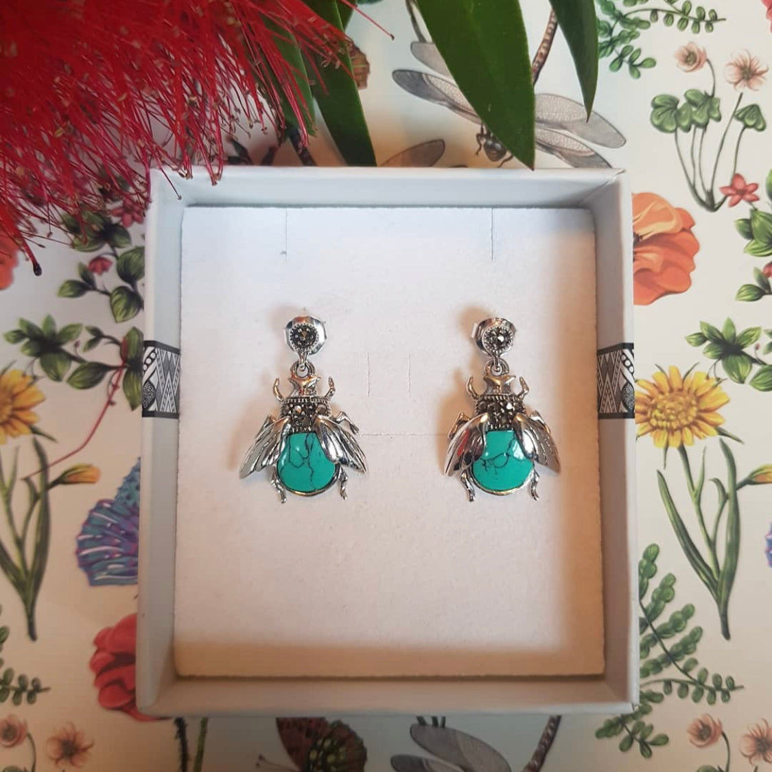 Marcasite and Turquoise Bee Earrings