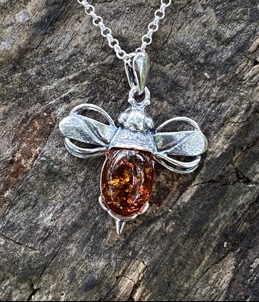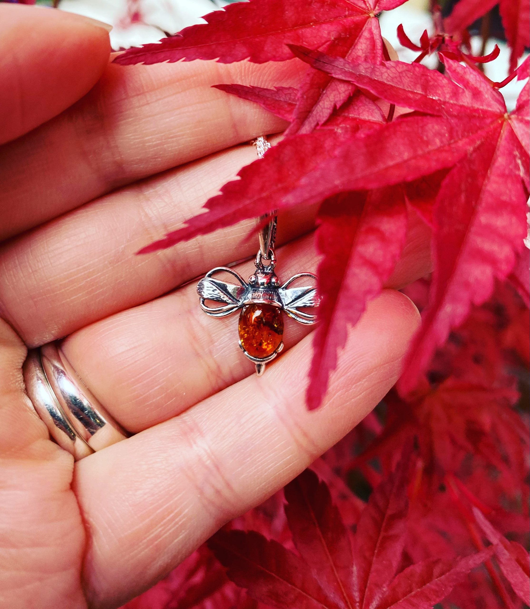 Your beautiful Bee Pendant is crafted in silver and Baltic Amber. She is presented on a silver chain.