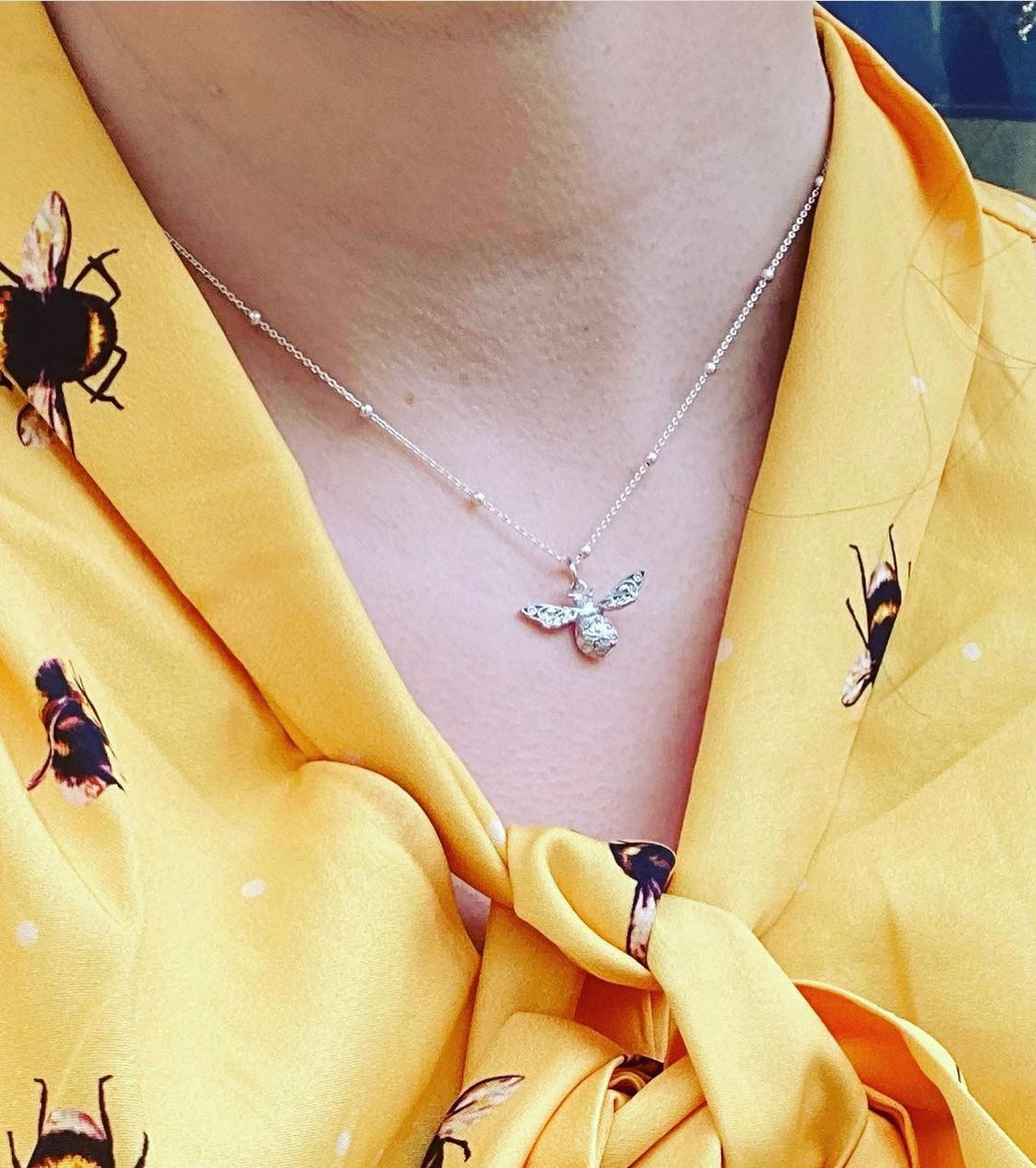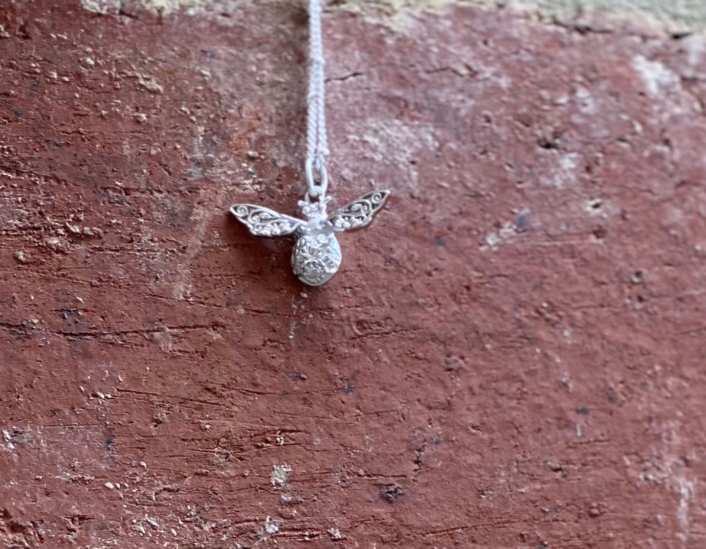 Bees symbolise brightness, community and personal power. This delicate bee pendant has a rounded front and back. She is also wonderfully textures and very tactile.