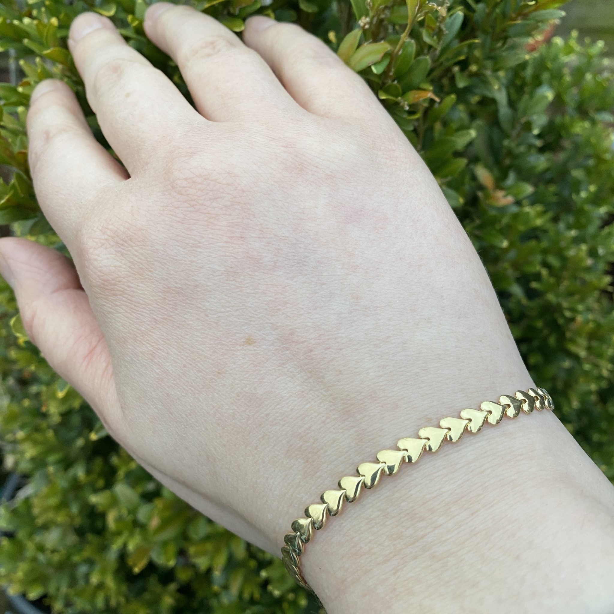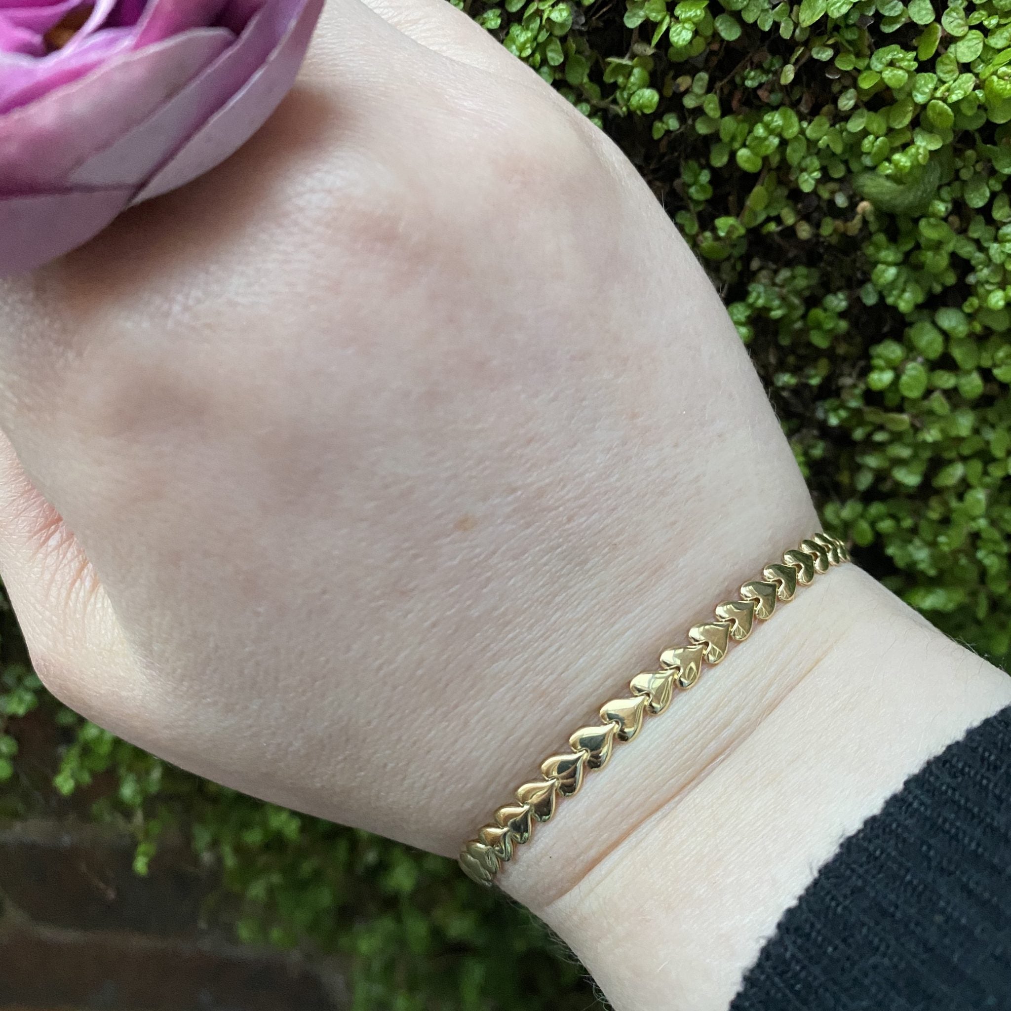 The beautiful hearts are flat to lie perfectly against the contours of your wrist.