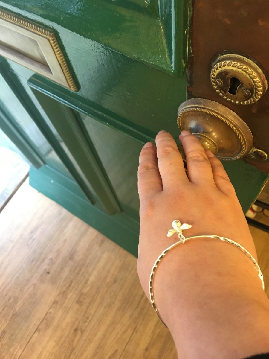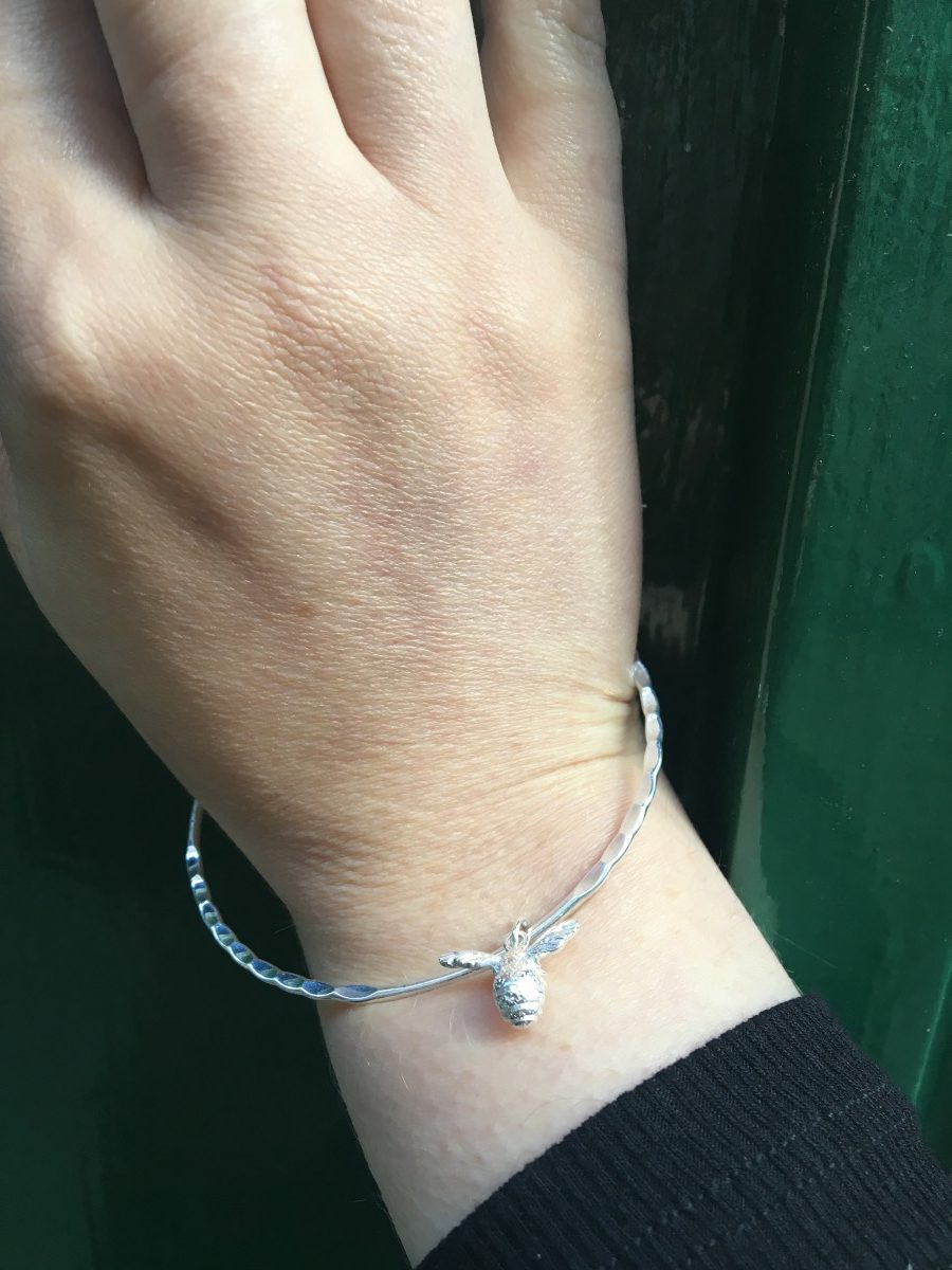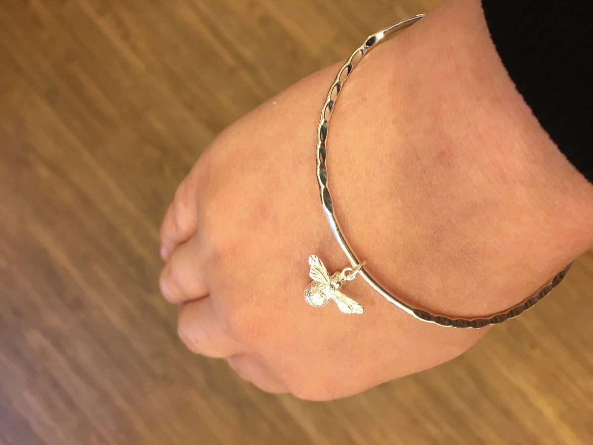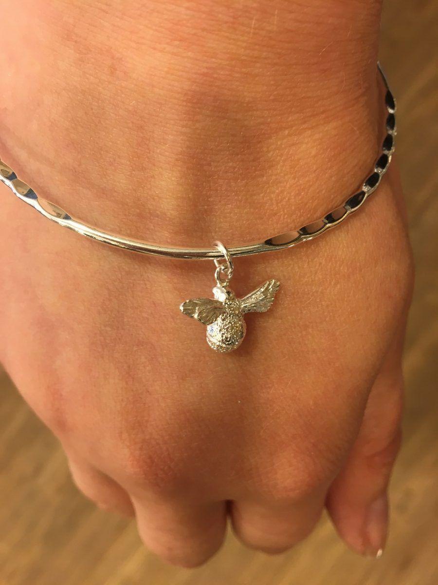 Measurements: Bangle 65mm round. Bee 12mm including ring.