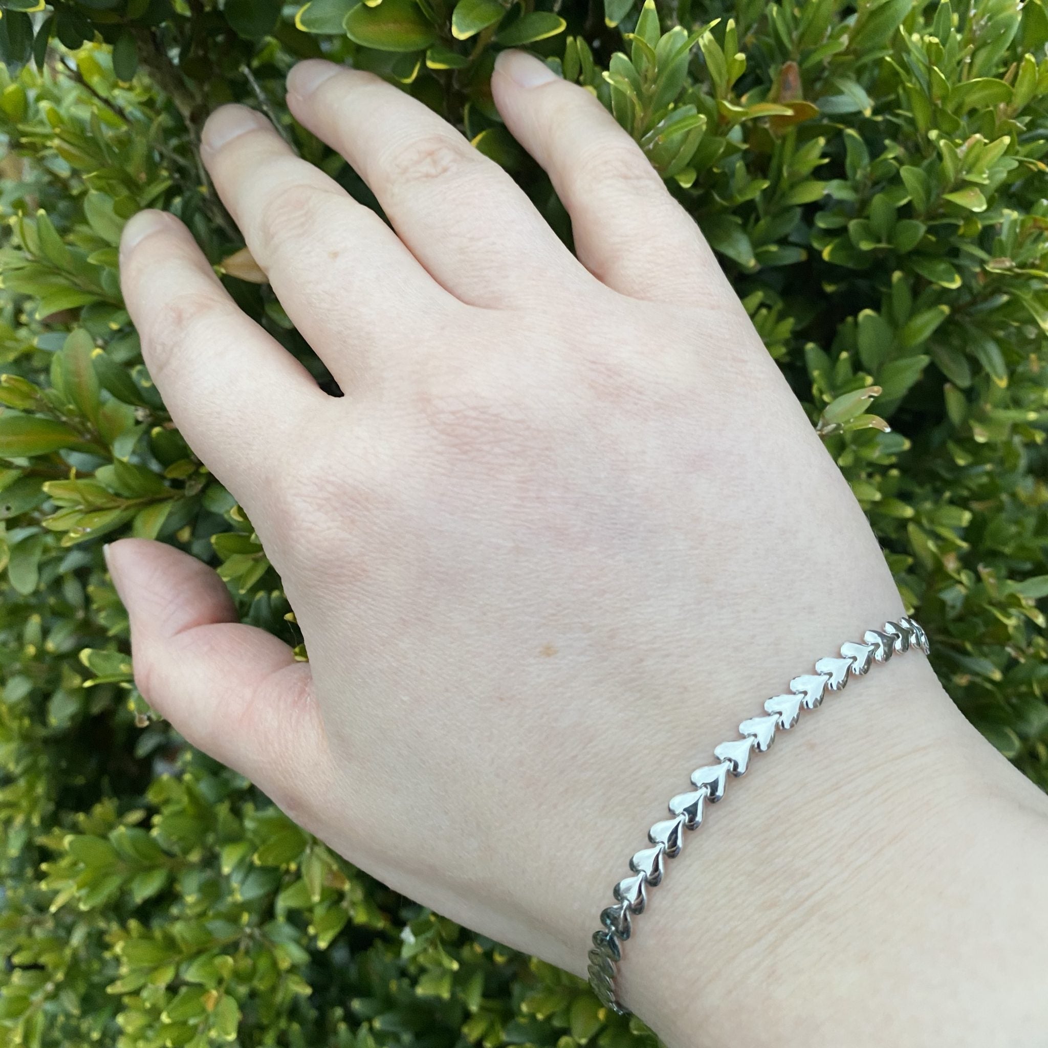The beautiful hearts are flat to lie perfectly against the contours of your wrist. It's also great fun to wear your bracelet with others in your collection