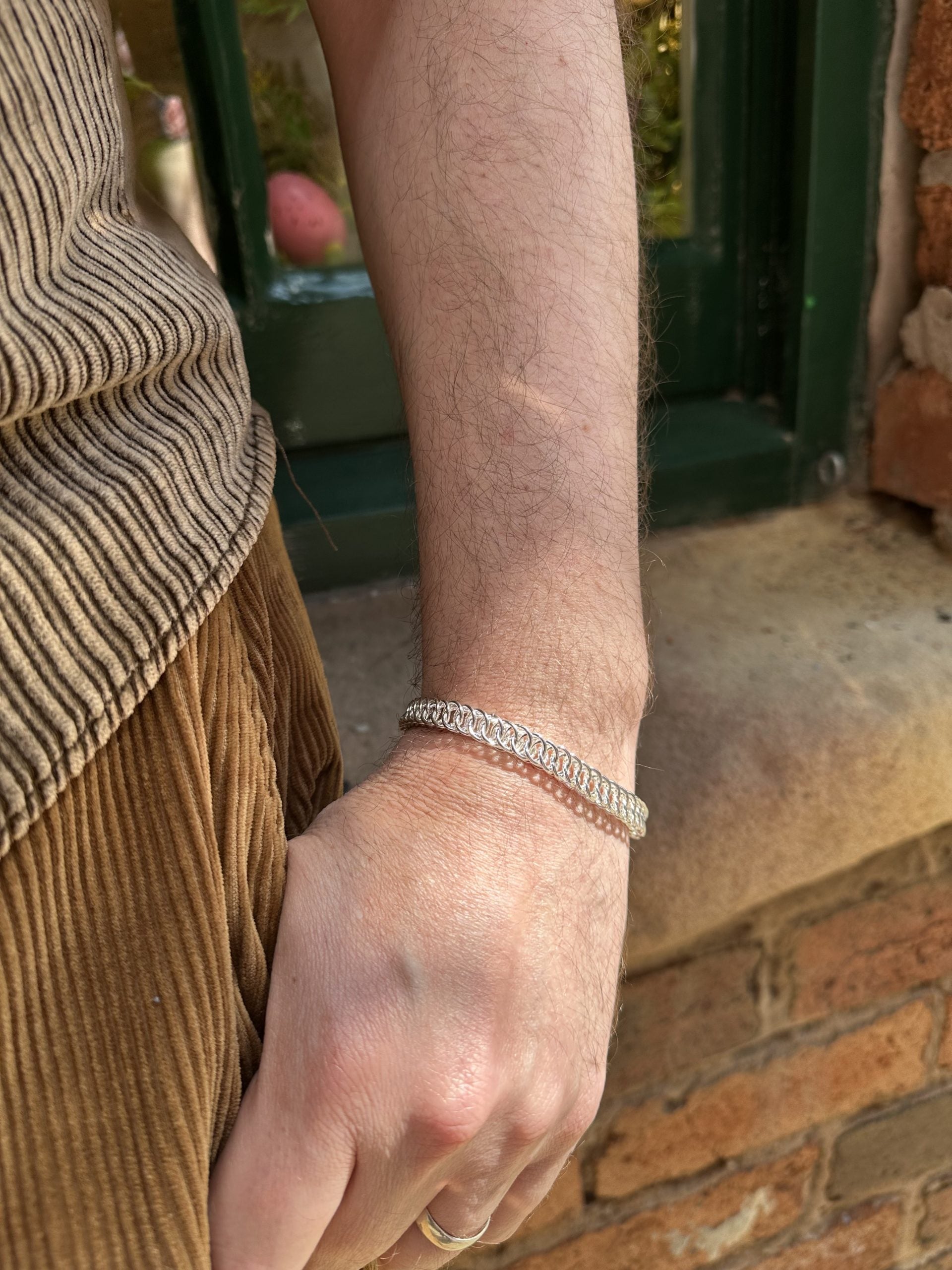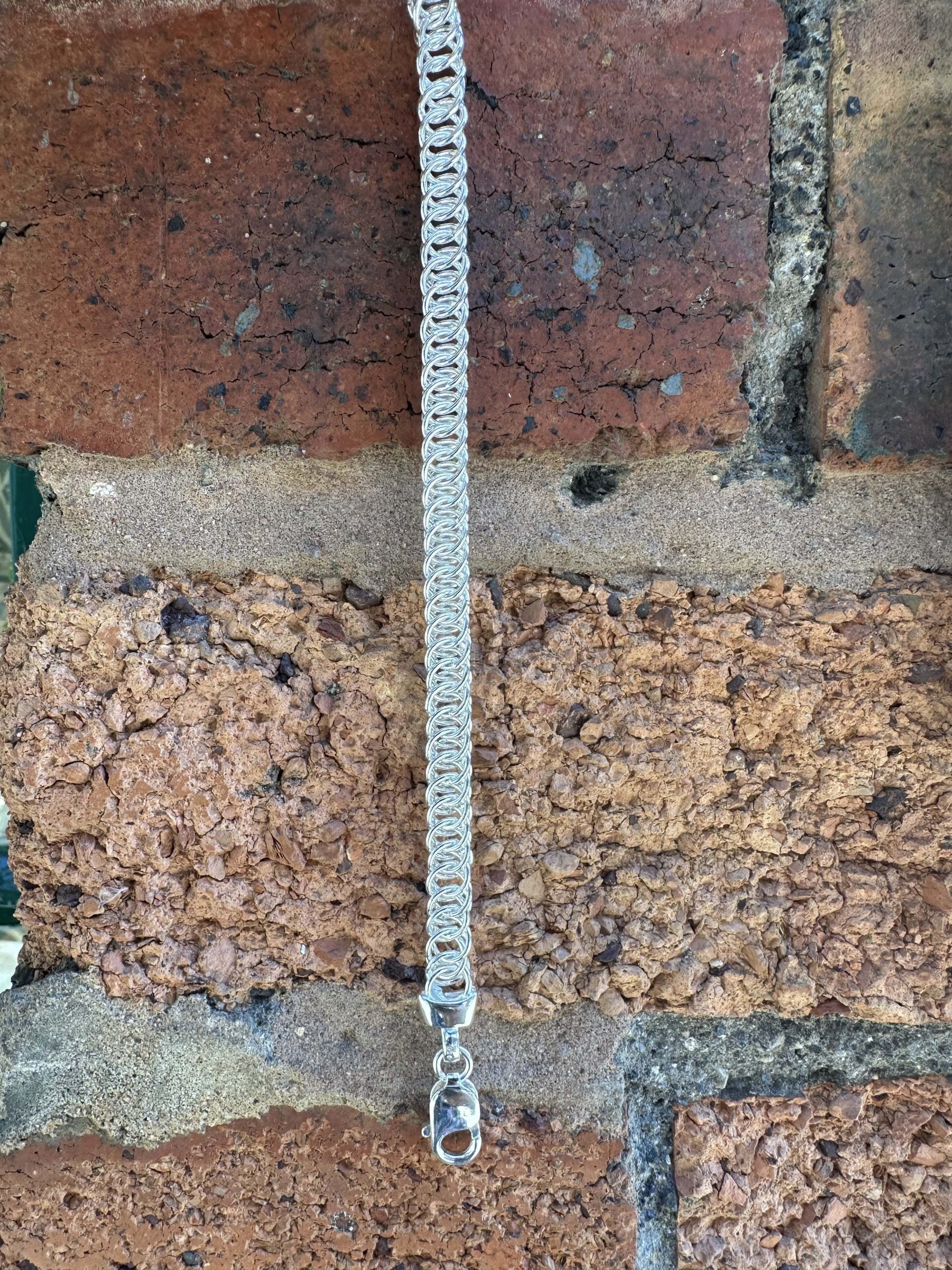 The herringbone link dates back to Ancient Egypt where craftspeople developed the technique of weaving metal into a pattern.