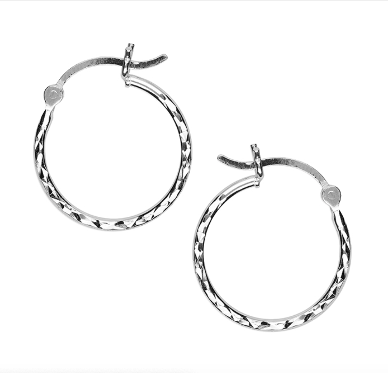 Our Silver Sparkle Hoops are available in tiny, small and medium.