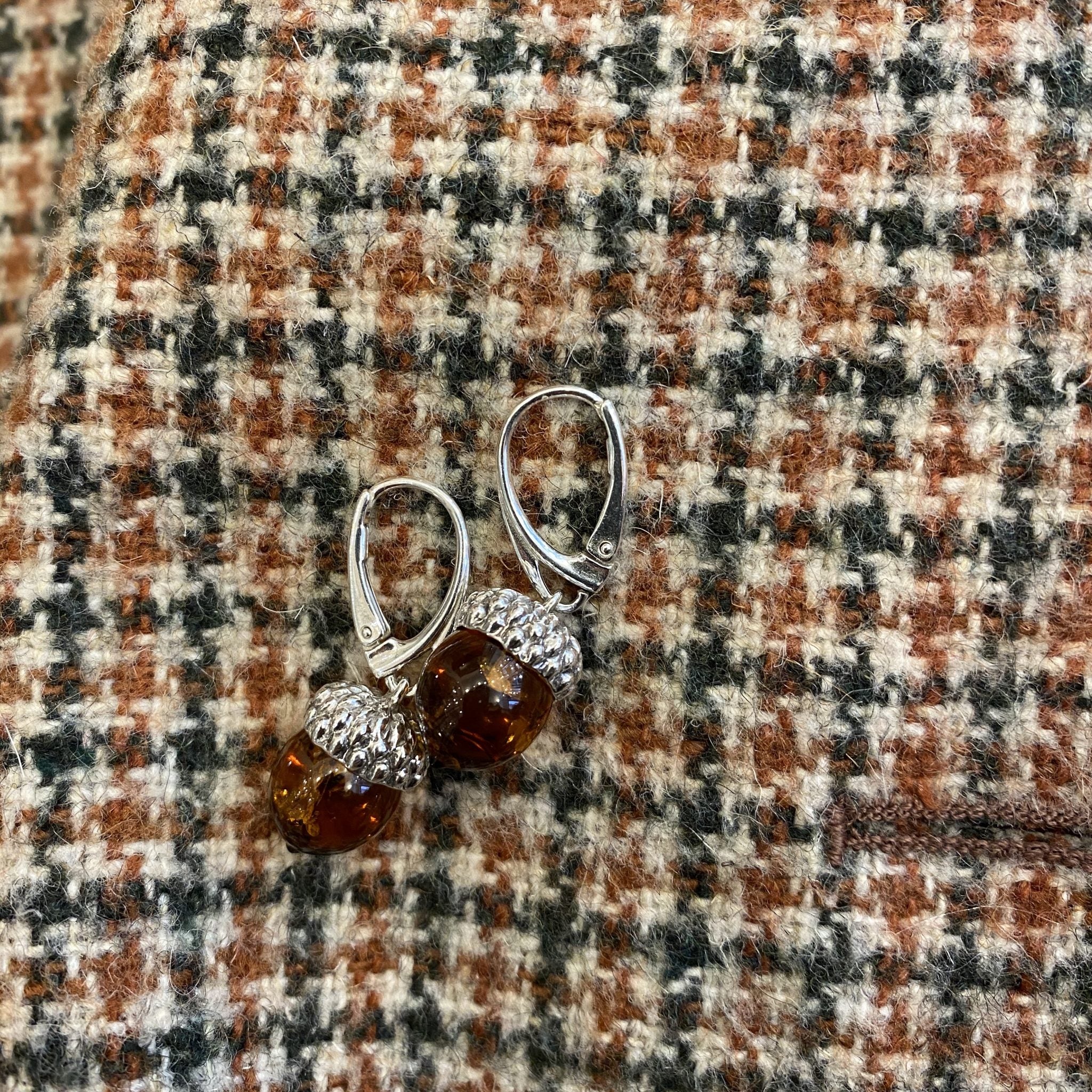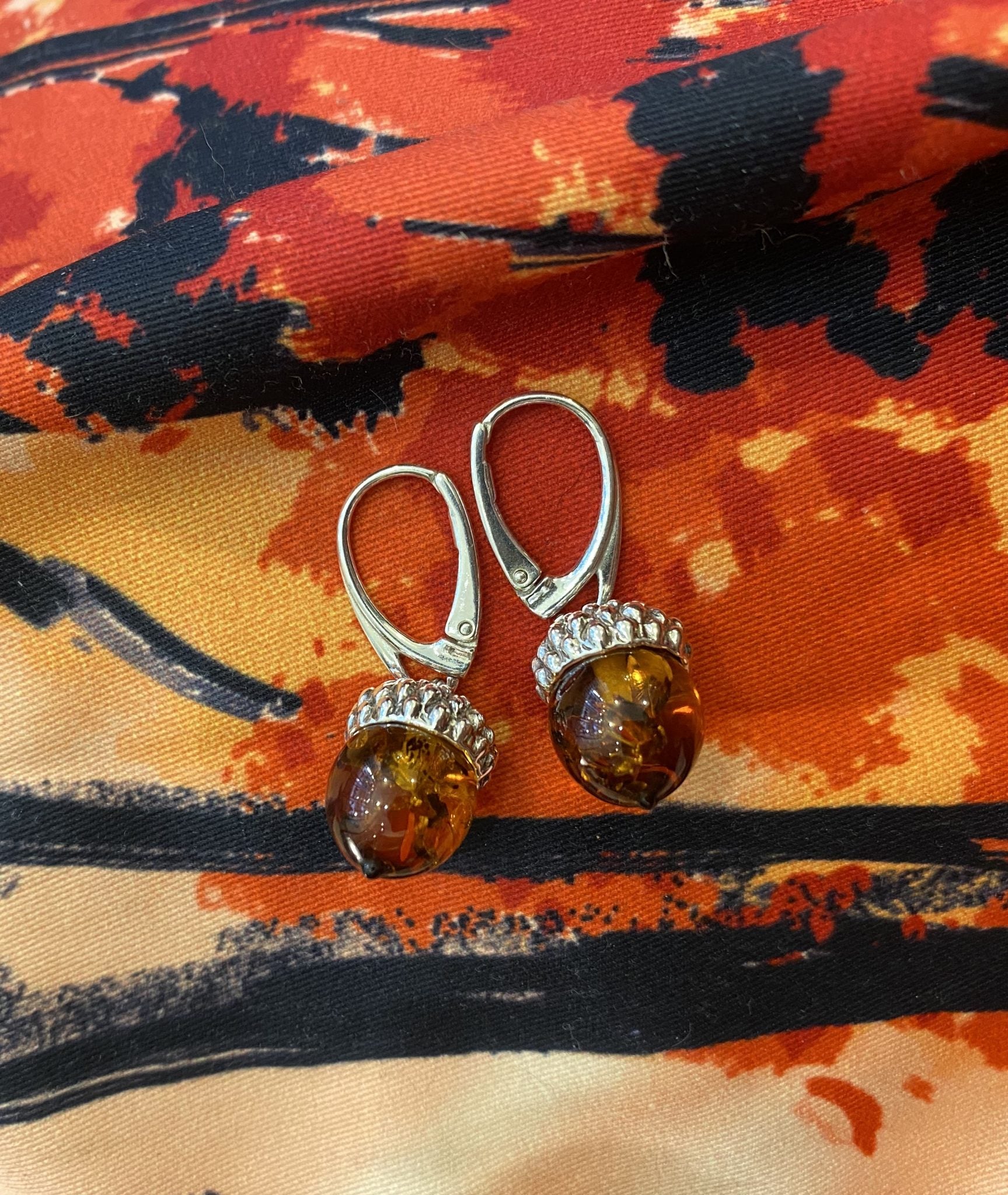Our stunning amber acorns have a smooth, shaped piece of amber with a silver cupule (hat). Your beautiful are presented on silver continental clasps so that they sit beautifully in your ear.