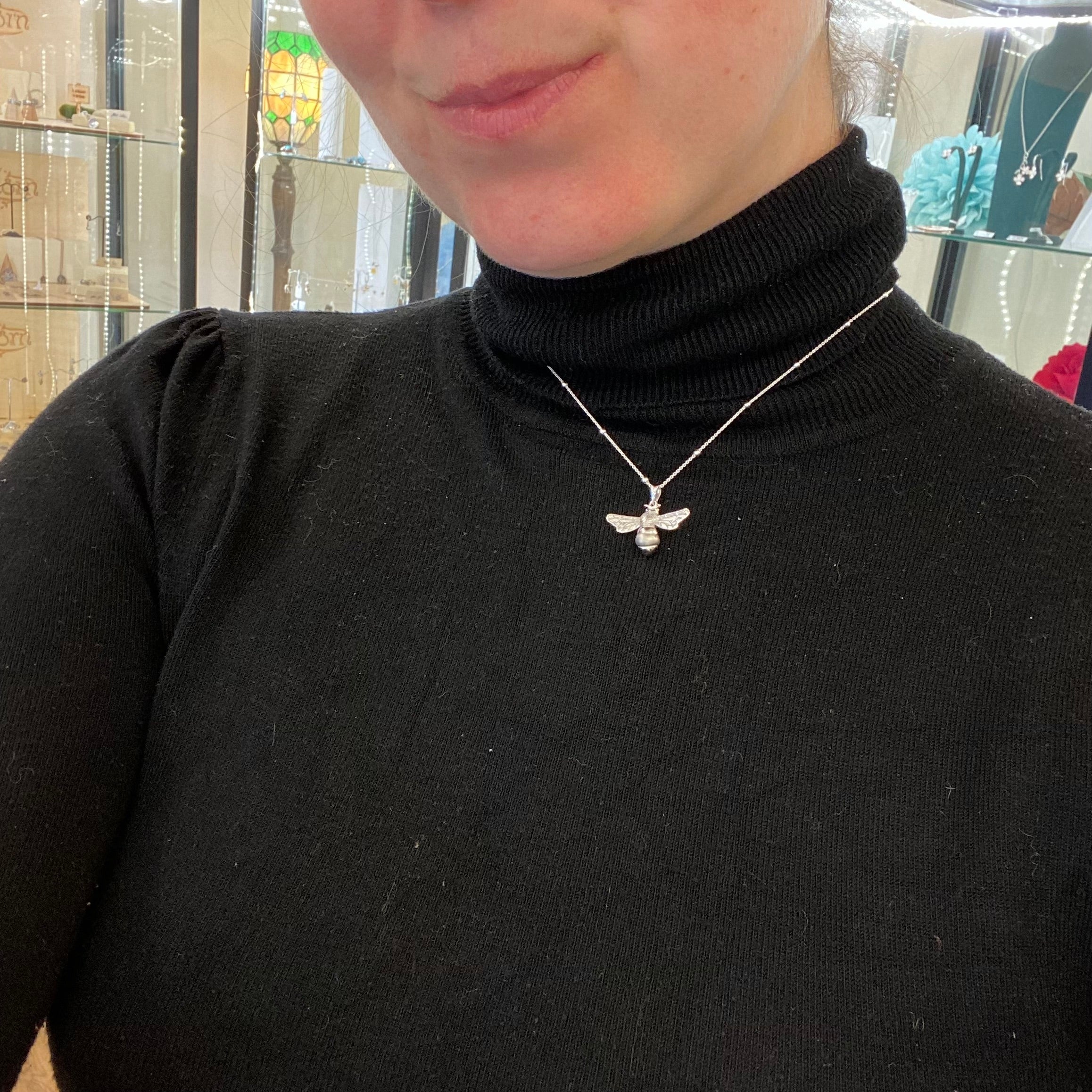 Your beautiful pendant can 'bee' worn alone or layered with other pendants and necklaces. She is presented on an adjustable dotty silver chain and you can choose your length to suit your style.