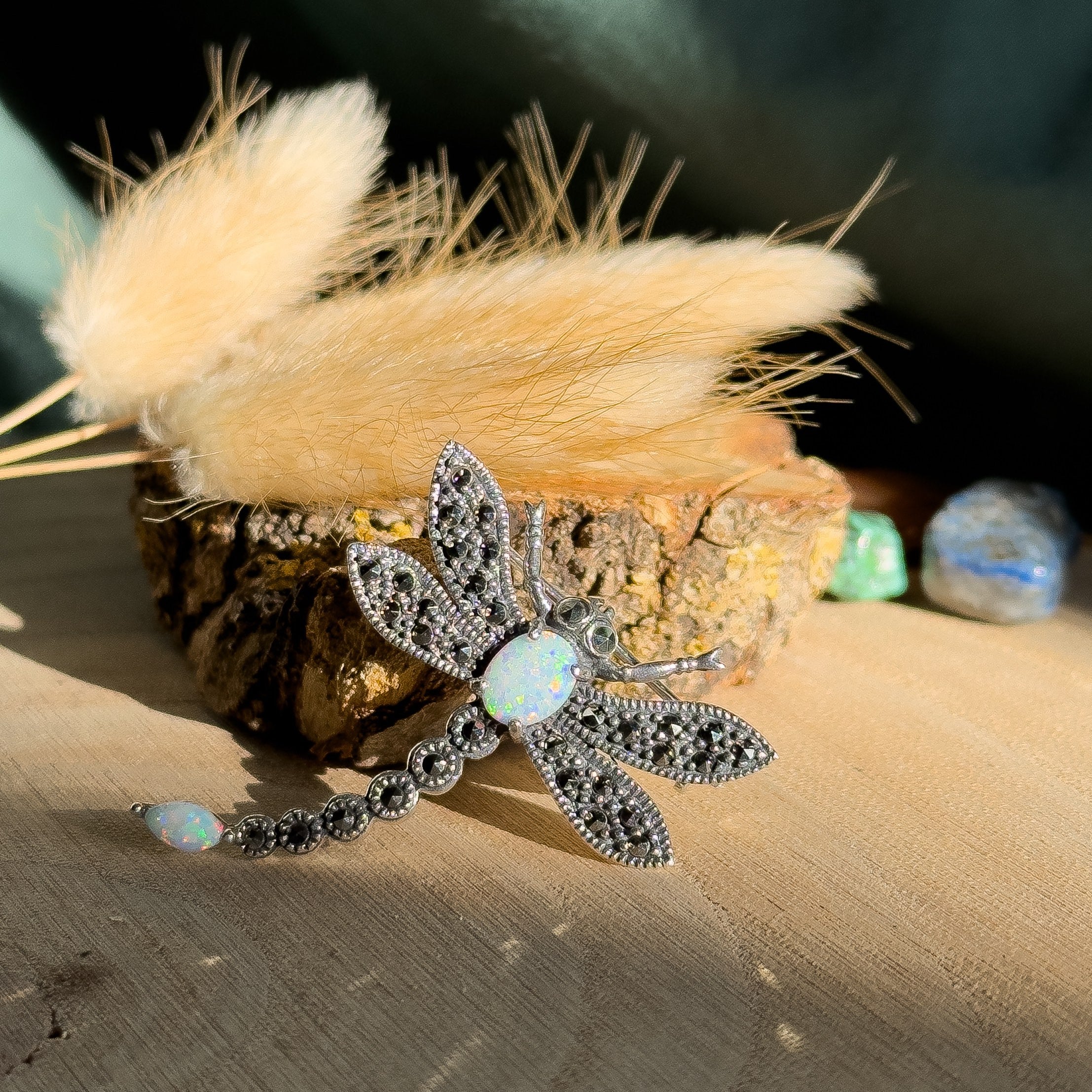 Small Marcasite and Opalite Dragonfly Brooch