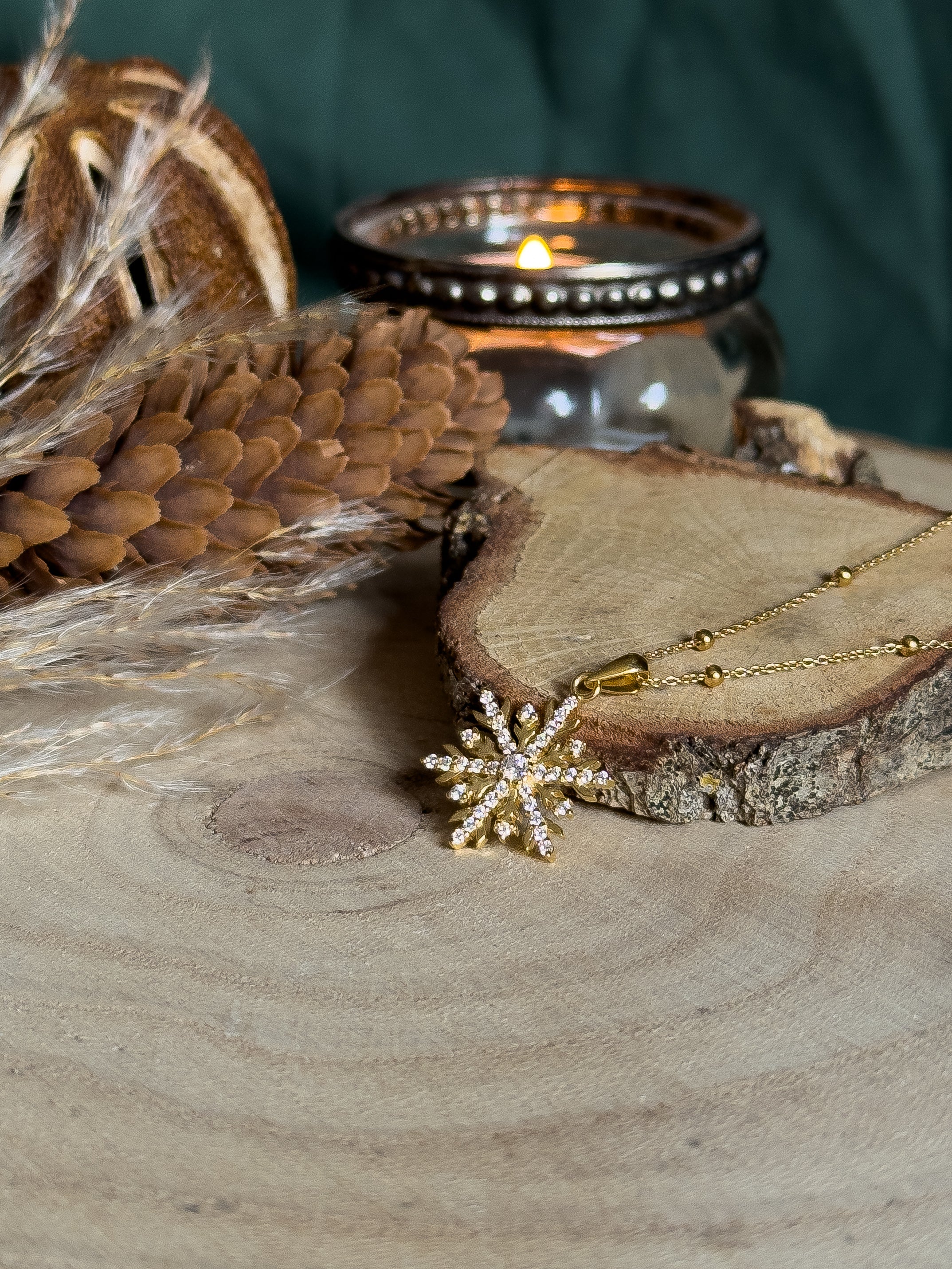 Crafted in silver with a gold finish and set with sparkling cubic zirconia, this snowflake will add shimmer to your outfit!